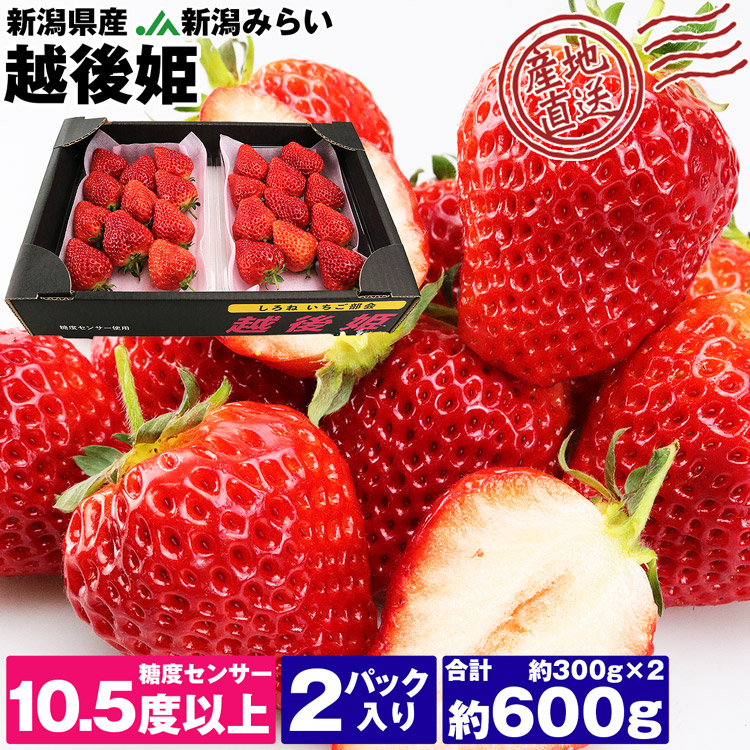 いちご 越後姫 約600g 糖度センサー10.5度以上 約300g×2パック 新潟県産 産地直送 イチゴ 苺 ブランド フルーツ 果物 産直 冷蔵便 同梱不可 指定日不可