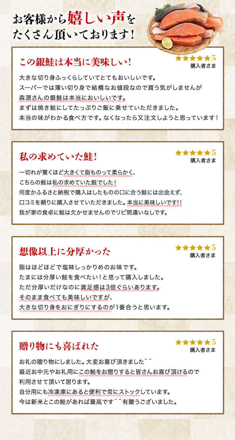 鮭本来の風味豊かでコクのある味わいを、ぜひご賞味ください。