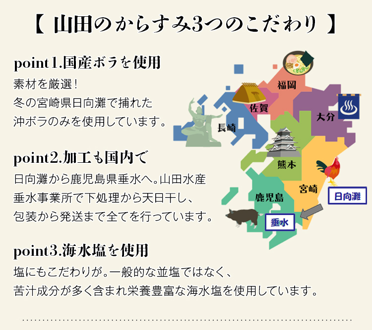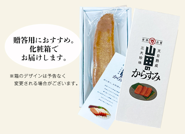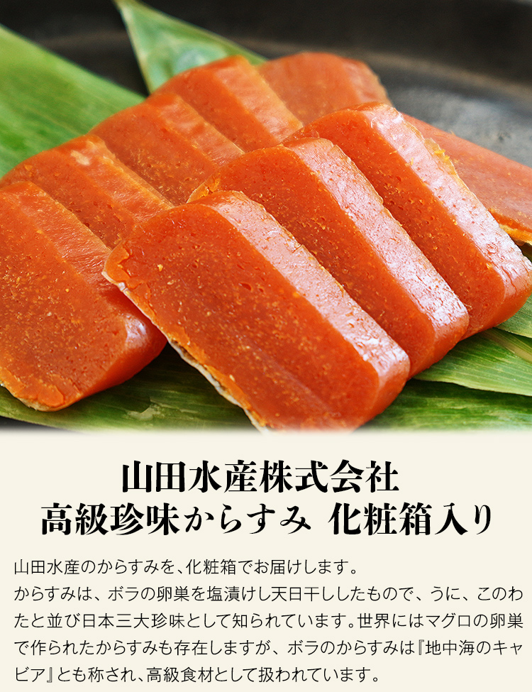 山田水産のからすみを、化粧箱でお届けします。