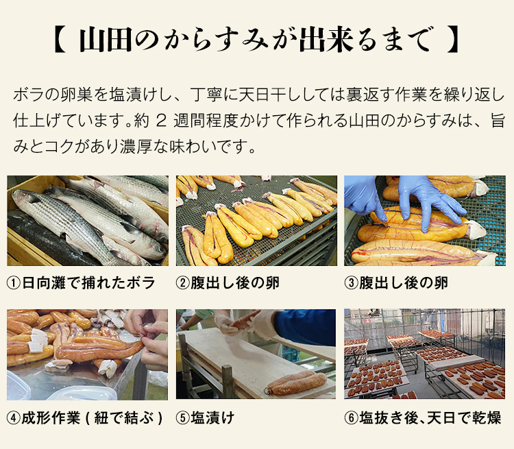 約2週間程度かけて作られる山田のからすみは、