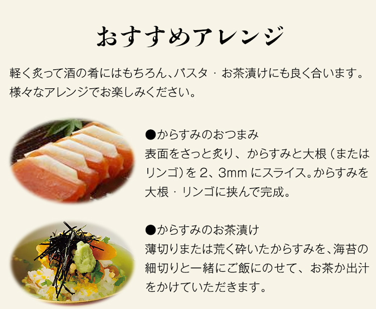 【名称】からすみ 【原材料名】ぼらの卵(国産)、食塩、砂糖 【内容量】片腹 【賞味期限】商品記載(※ご家庭用の冷凍庫の場合、40日を目安にお早目にお召し上がり下さい。) 【保存方法】-18℃以下で保存してください。 【配送タイプ】冷凍 |
