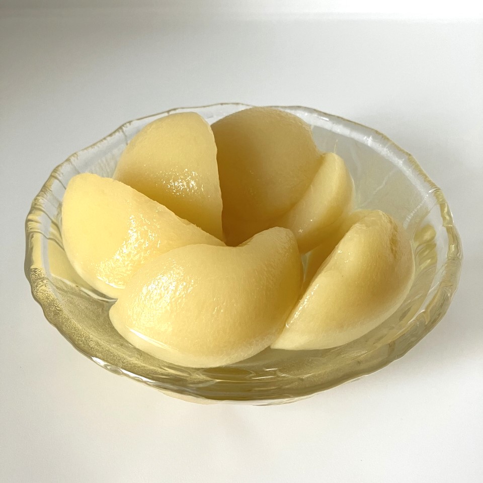 | 原材料名 | 白もも(中国産)、砂糖/酸味料、酸化防止剤(V.C.)(一部にももを含む)