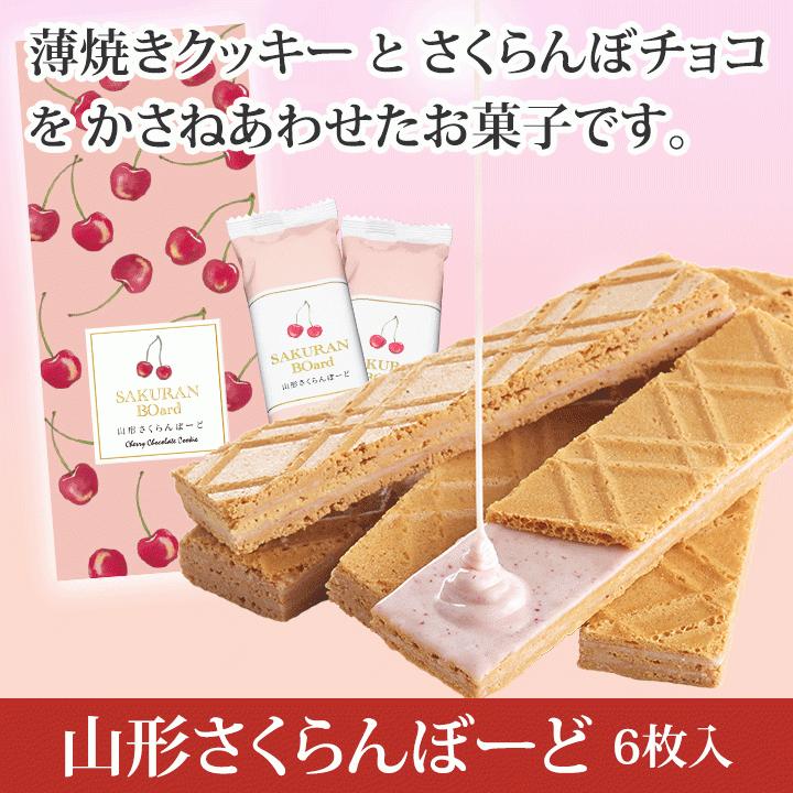 「山形さくらんぼーど」6枚入(個包装)/佐藤錦使用/ウエハース 佐藤錦 サクランボ山形 庄内 鶴岡 お土産 特産品 名産品 お取り寄せ