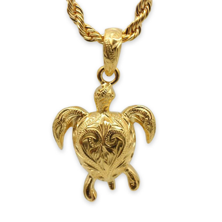 ハワイアンジュエリー ネックレス ホヌ ペンダント K24 純金 仕上げ 選べる チェーン 種類 Surgical Stainless316L E-BOS ksfn006