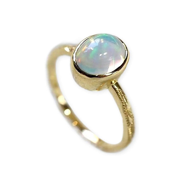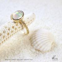 ハワイアンジュエリー リング 指輪 Laniakea 手彫り K18 ゴールド リング ひと粒の大粒な オパール カボション 華奢で大人可愛い レディース リング lfp035
