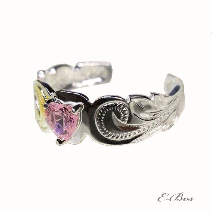 ハワイアンジュエリー リング トゥーリング 指輪 2wey ピンキーリング ピンク ハート キュービックジルコニア レディース SILVER925 プレゼント tor002
