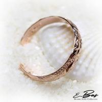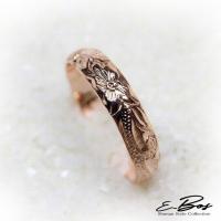 永遠に途切れることの無い波が幸せを乗せて運ぶ「スクロール」と魅力を高める花「プルメリア」の堀り。K14ピンクゴールドでコーティングされたラグジェアリーなリングです。人気のフラットタイプです。