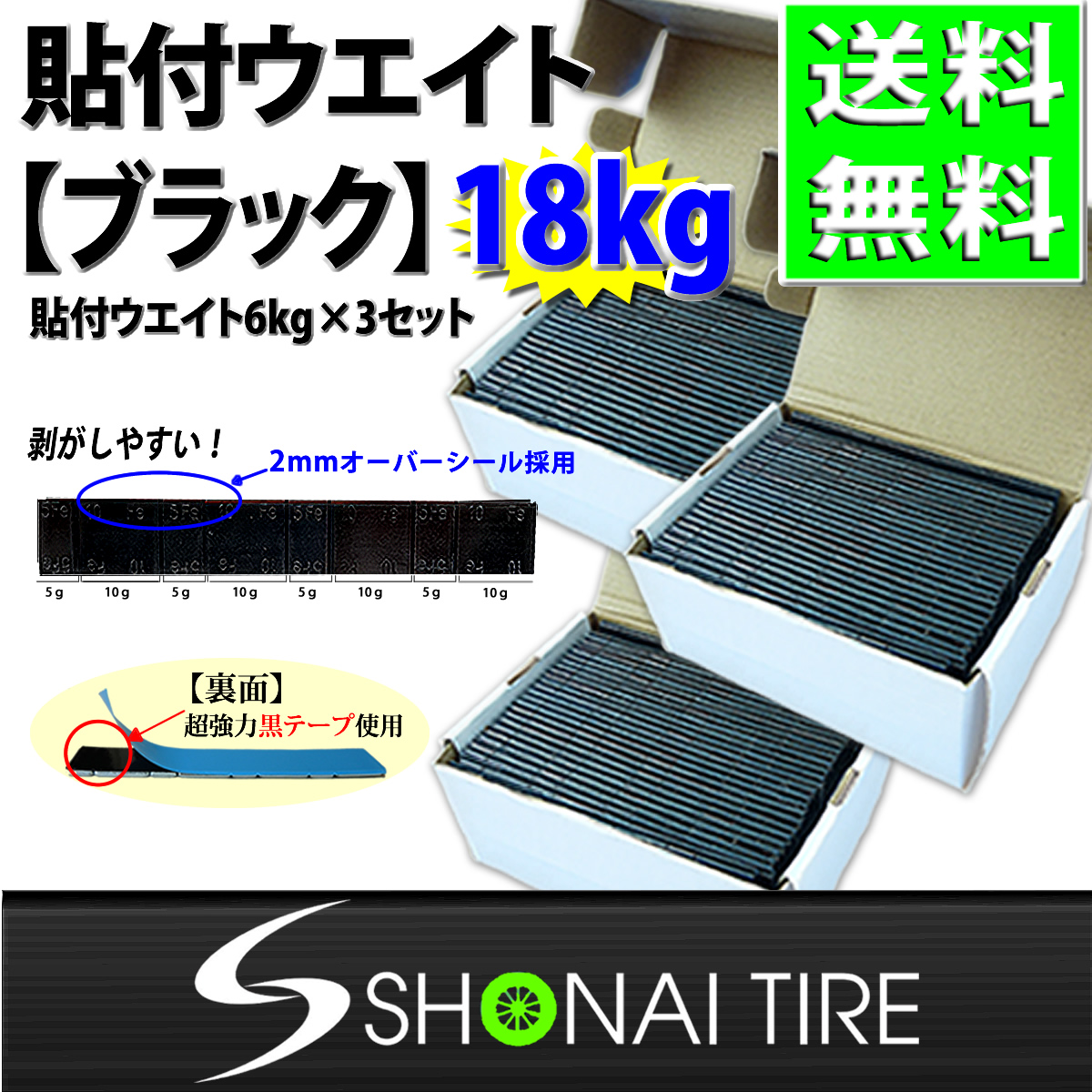 | 商品名 | ■SHONE 貼付ウエイト(ブラック)| 1箱の重量 | ■60g×100枚入り6kg | コメント | ※剥がしやすい2mmオーバーシール採用 | ※サイズ 縦約1.8cm 横約14.2cm 厚さ約0.4cm ※-20℃〜50℃で接着可能なので、厳冬時にホイールを 暖める必要はございません。 ※裏面は超強力黒テープ使用です。 ※強力に接着しながらも、剥がす際にはテープのカスが 残りにくくなっております。 |
