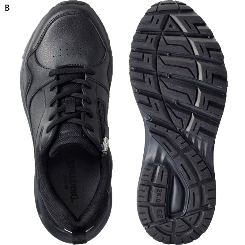 スポルディングの幅広(超ワイド)設計のレース(ひも)+サイドファスナー付きのウォーキングシューズです。