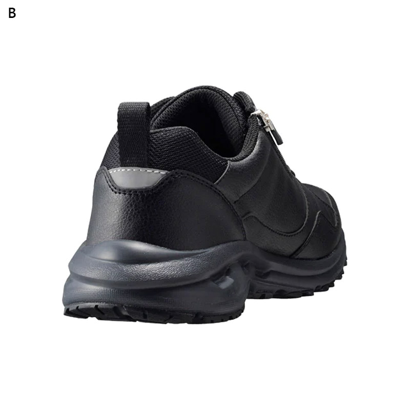 サイドファスナー付きひも靴です。ひもを結んだままファスナーの上げ下げをするだけで靴の着脱が簡単に行えます。