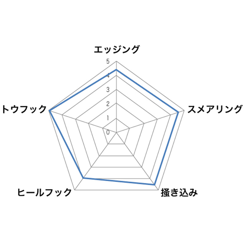 ・後足部にはRH4.2mmと高剛性ミッドソールを採用し、様々な形状のヒールフックにオールラウンドに対応するとともに、踵の形状にしっかりとフィットし優れた追従性を発揮