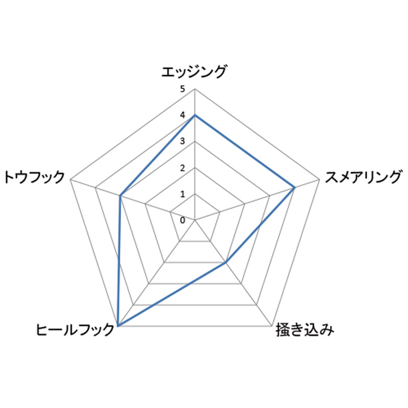 ・エッジングとスメアリングを両立できるよう調整された剛性の高いソールフレックス