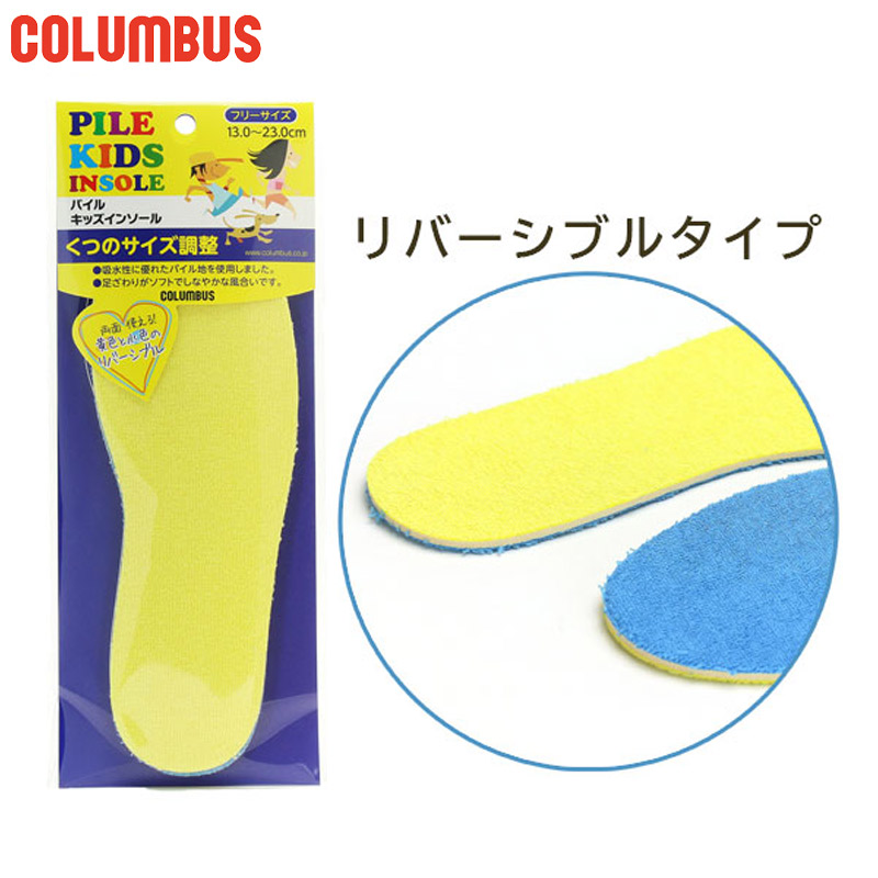 メール便発送 16.0〜23.0cm対応 コロンブス ジュニア キッズ パイルキッズインソール リバーシブルタイプ シューケア用品 子供 インソール 中敷 サイズ調整