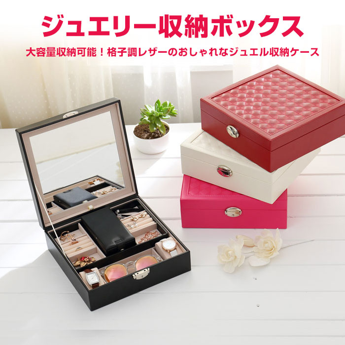 ● 格子調のPUレザーがとってもおしゃれで可愛いジュエリー収納ボックスです!
