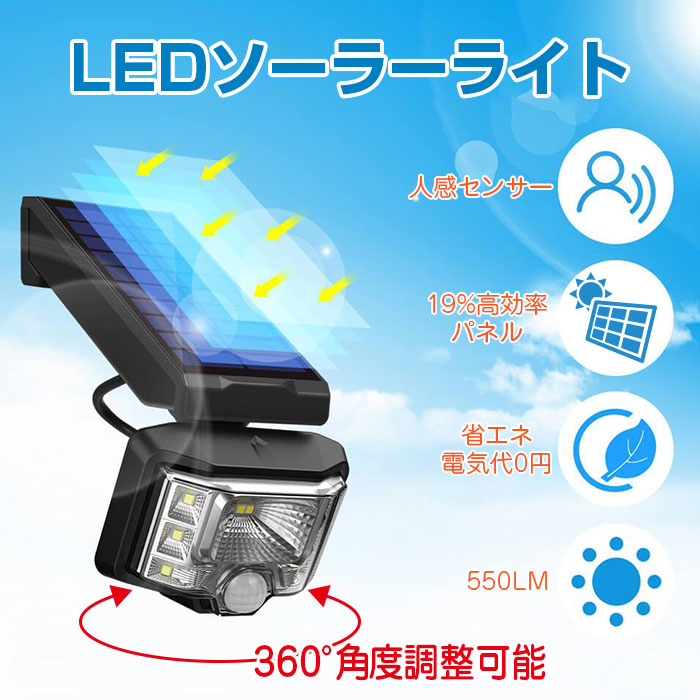 ● 転換率は19%と高効率で、最大550LMと明るく、防犯対策にも活躍します。
