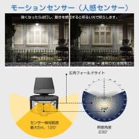 ● 周りが暗くなると自動点灯。人感センサーを搭載し、最大5m、120度の範囲で動きを感知、20秒明るく点灯した後に通常の明かりに戻ります。周りが明るくなると消灯、充電を開始します。