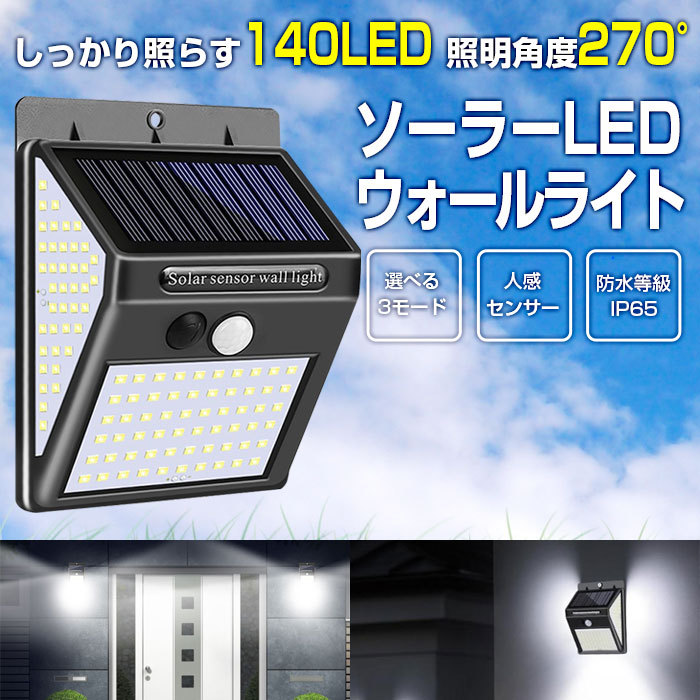 ● 140LEDでしっかり照らす、ソーラーウォールライトです。