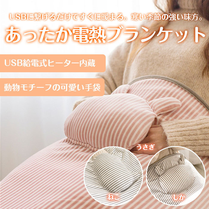 ● 加熱パッドのある部分は、うさぎ・ねこ・しかの動物モチーフでとっても可愛い手袋になっています。ふんわりもこもこ暖かく触り心地抜群♪枕のようにして休むのにもおすすめです。