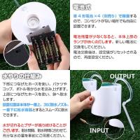 ● 単4形電池×4(別売り)で稼働するので、コンセントがない場所でも自由に設置できます。電池残量が少なくなると、本体正面のランプが赤く点灯します。新しい電池に交換をしてください。電池交換後は、設定値がリセットされるので、再度設定してください。