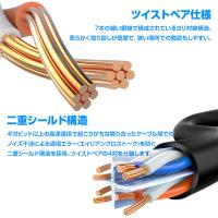 ギガビット以上の高速通信で起こりがちな隣り合ったケーブル間でのノイズ干渉による通信エラー(エイリアンクロストーク)を防ぐ二重シールド構造を採用。ツイストペアの4対を分離します。
