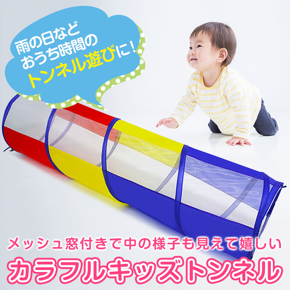 使う時だけサッと広げてすぐ遊べる、ポップアップ式・カラフルキッズトンネルです。