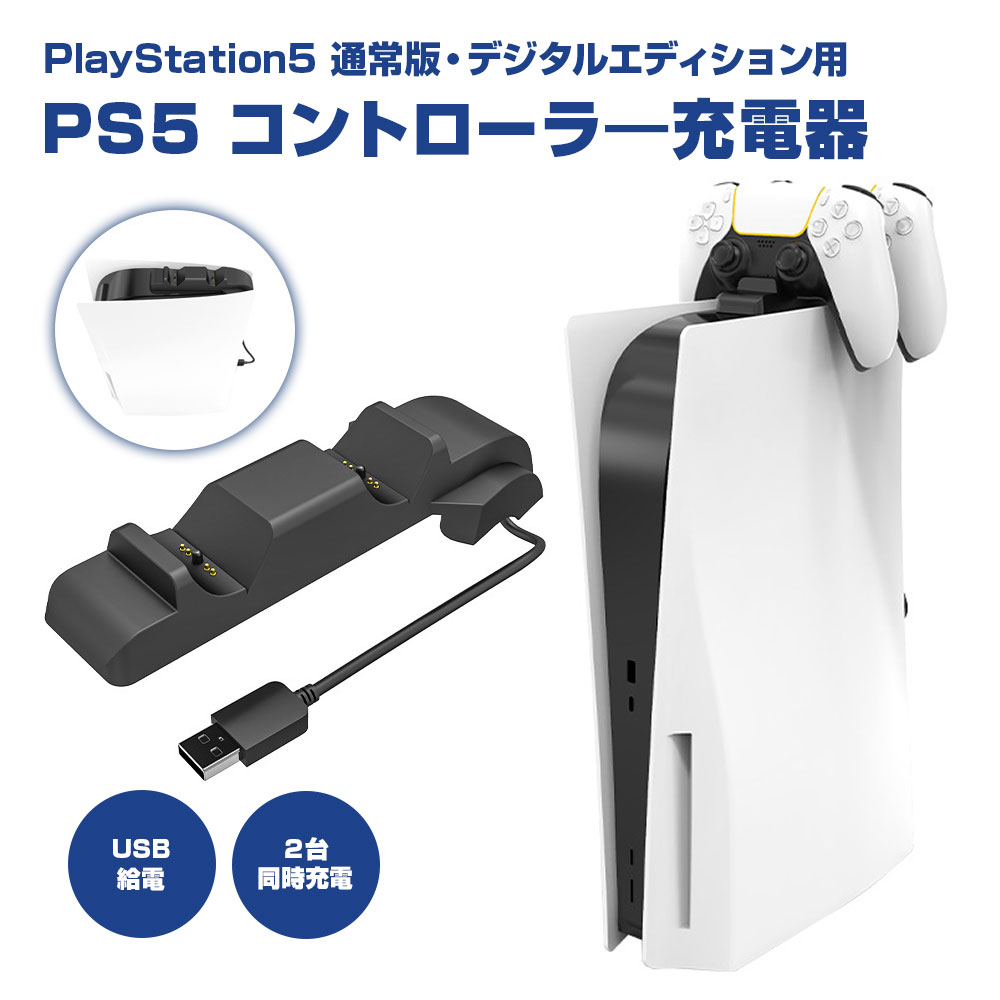 PS5 通常版・デジタルエディション両対応。PS5コントローラー充電器です。