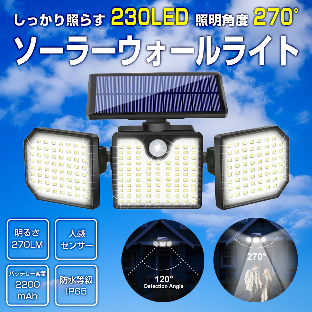 230LEDでしっかり照らす、ソーラーウォールライトです。
