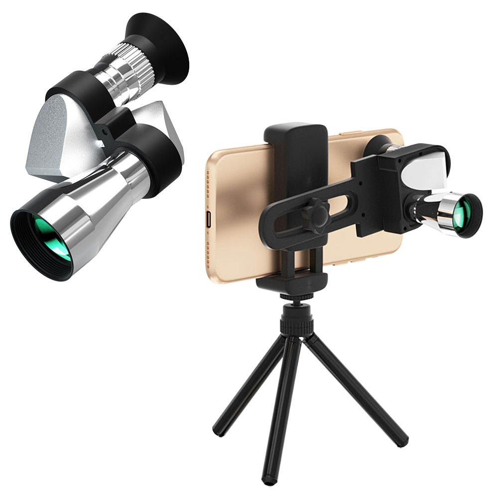 スマホアダプターとミニ三脚が付属しており、ズームインした写真やビデオを撮影できます。