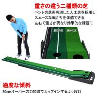 ベントの芝を再現した人工芝を採用し、スムーズな転がりを体感できる。左右で重さが異なり、効果的な練習に。