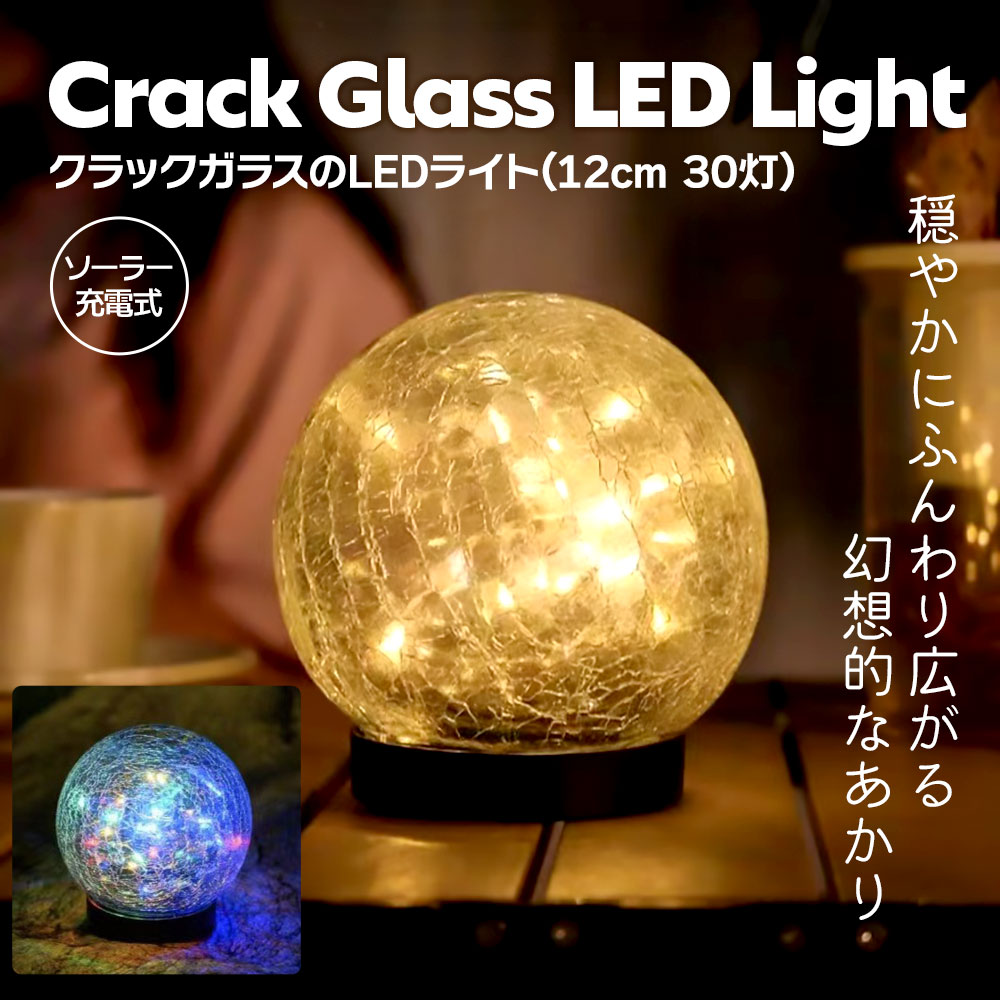 クラック加工が施されたガラス球体のLEDライト。