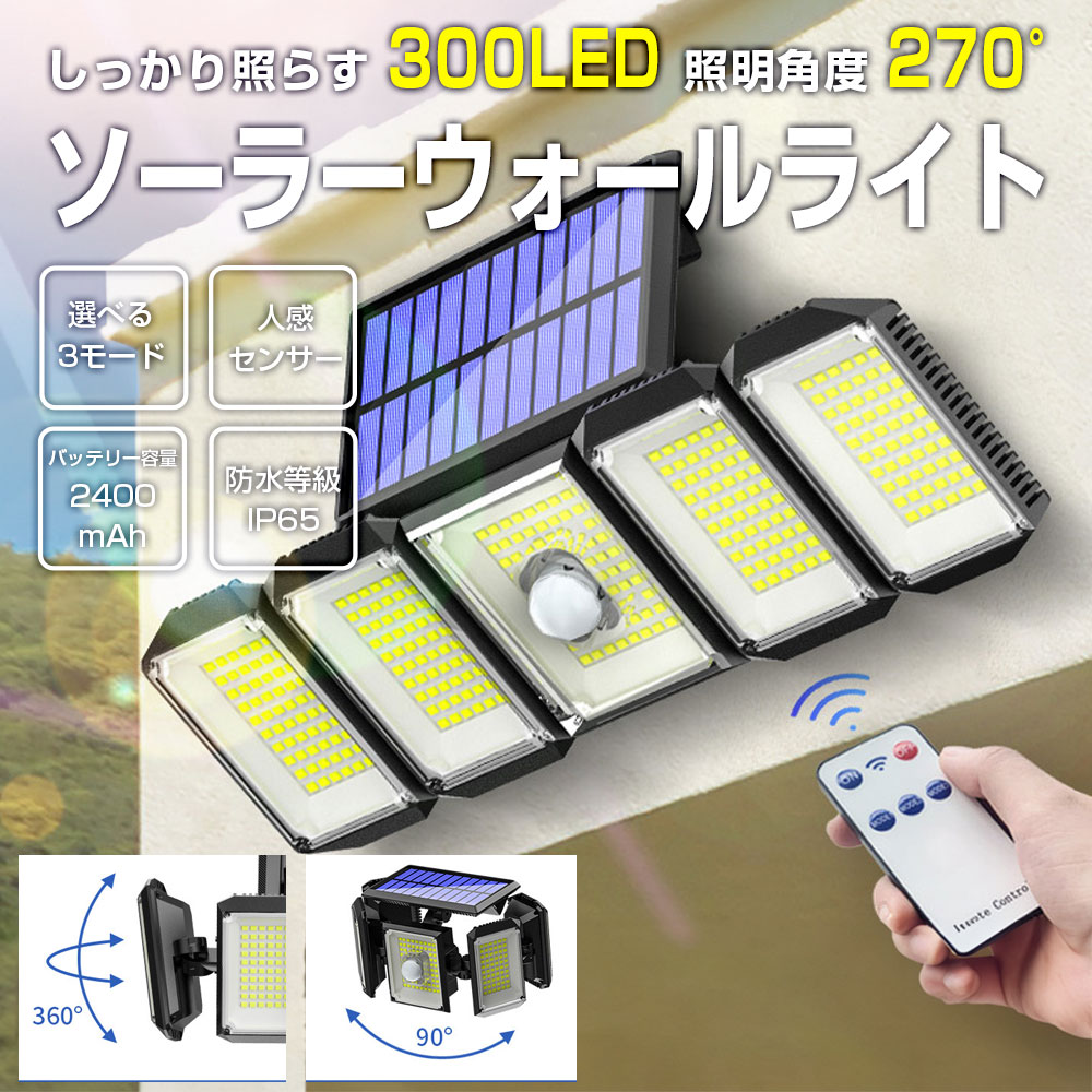 300LED 照明角度270°で、玄関先などを明るく照らしてくれます。
