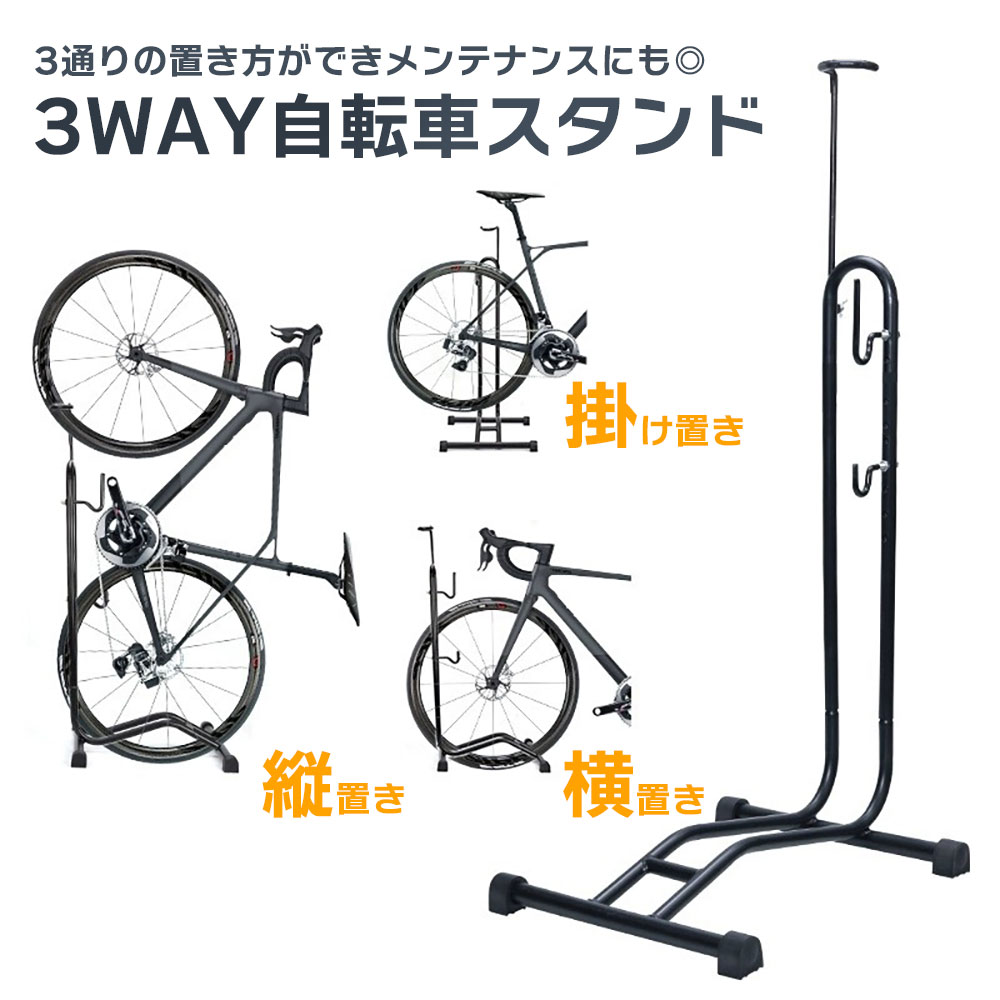 縦置き、横置き、掛け置きの3通りの置き方ができ、駐輪スペースに合わせ選択できます。メンテナンスもしやすく便利!
