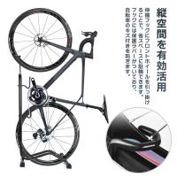 伸縮フックにフロントホイールを引っ掛けることで、省スペースに駐輪できます。(縦置き)