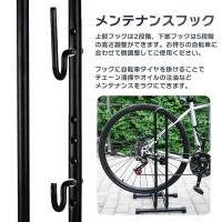 フックに自転車タイヤを掛けることでチェーン清掃やオイルの注油などメンテナンスをラクにできます。