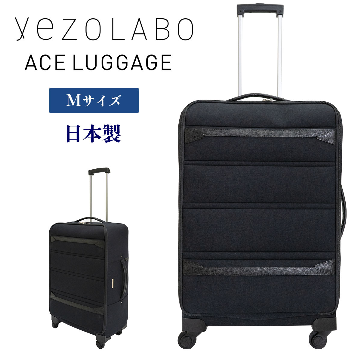 ソフトスーツケース ACE LUGGAGE キャリーケース Mサイズ 軽量 ストッパー付き TSAロック ダイヤル式 yezoLABO【正規品5年保証】3〜5泊 ソフトケース 爆買