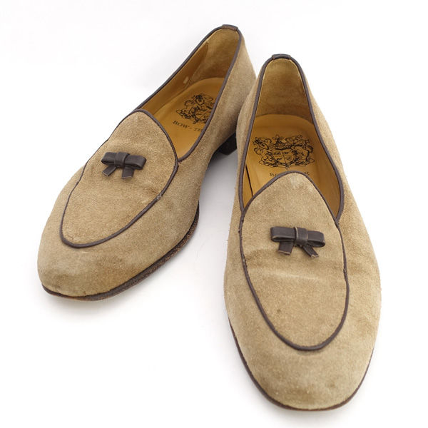 BOW-TIE ローファー/スエード/ベージュ/6.5(25.5cm) メンズファッション 中古
