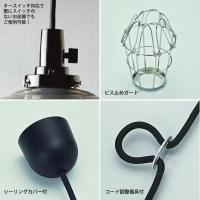 アルミガードとブラックのベースが組み合わされた、シンプルなペンダントライト。