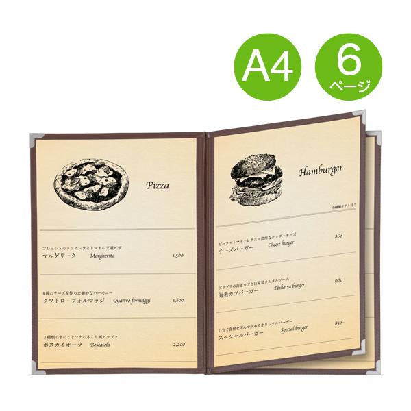 【A4サイズ】【6ページ】クイックメニュー QM-4 茶 メニューブック 入れ替え簡単 クリアタイプ 両面仕様 コーナー金具付 ドリンクメニュー オシャレ PET素材