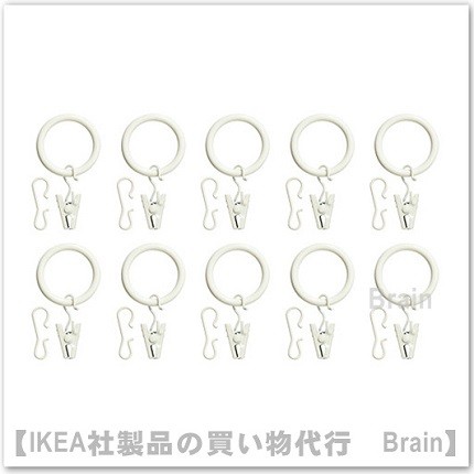 IKEA/イケア SYRLIG/スィールリグ カーテンリング25 mm クリップ&フック付き10個セット ホワイト(202.240.99)