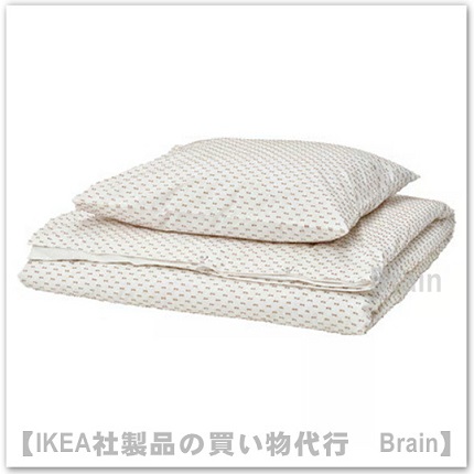 IKEA/イケア BANDKNIPPE/バンドクニッペ 掛け布団カバー&枕カバー150×200cm ホワイト/ベージュ(606.220.01/60622001)