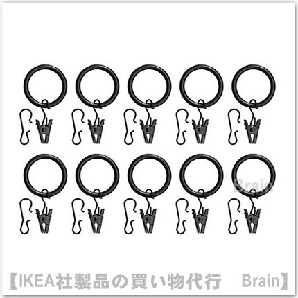 IKEA/イケア SYRLIG/スィールリグ カーテンリング25 mm クリップ&フック付き10個セット ブラック(902.172.41)