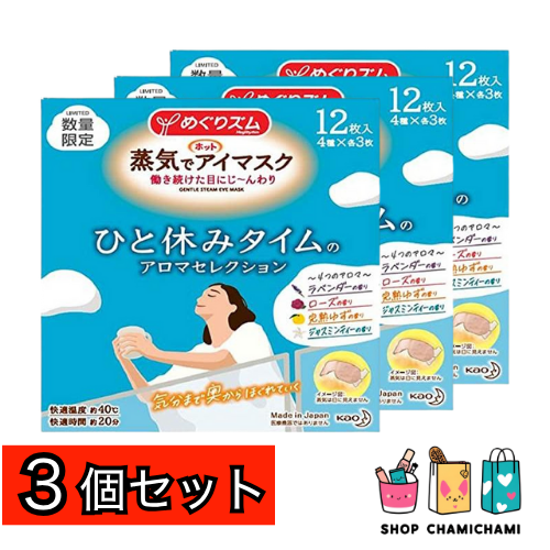 3個セット めぐりズム 蒸気でホットアイマスク アソート 12P