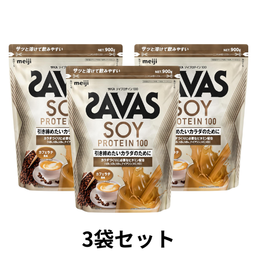 3個セット ザバス(SAVAS) ソイプロテイン100 カフェラテ風味 900g 明治