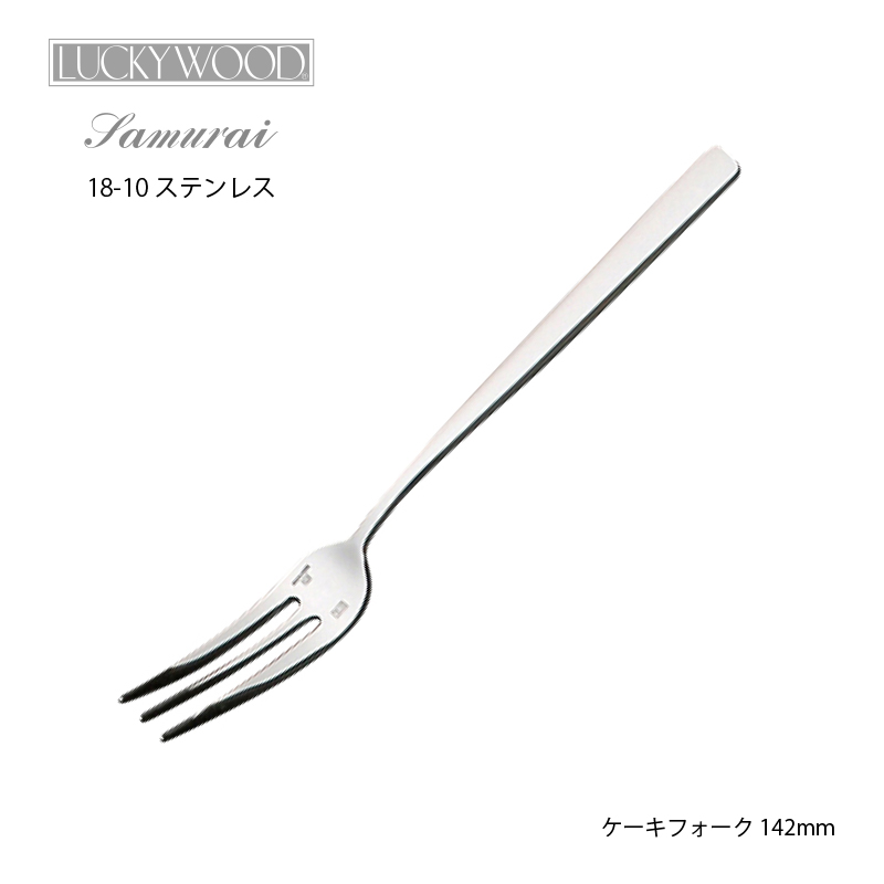 ケーキフォーク 142mm ラッキーウッド サムライJAPAN ストレートライン 0-09214-000 LUCKY WOOD 18-10ステンレス フォーク 日本製 燕三条 食器洗浄機対応