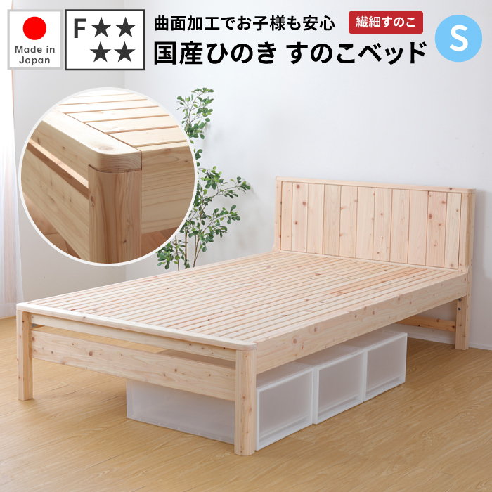 すのこベッド シングル 檜ベッド 日本製 繊細すのこ ヒノキベッド ひのきベッド すのこ 国産 桧ベッド 檜ベッドフレーム檜すのこベッド シングルサイズ 角の丸いベッドフレーム すのこベッド 角丸 ベッドフレーム 角丸 角が丸い 丸角 繊細すのこ シングル F★★★★ 低ホルムアルデヒド