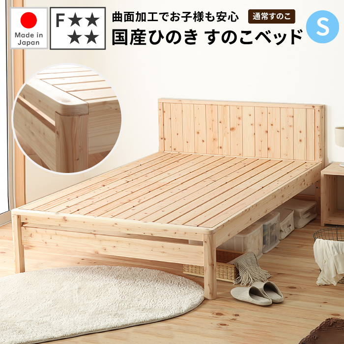 すのこベッド シングル 檜ベッド 日本製 ヒノキベッド ひのきベッド すのこ 国産 桧ベッド 檜ベッドフレーム檜すのこベッド シングルサイズ 角の丸いベッドフレーム すのこベッド 角丸 ベッドフレーム 角丸 角が丸い 丸角ド 通常すのこ シングル F★★★★ 低ホルムアルデヒド