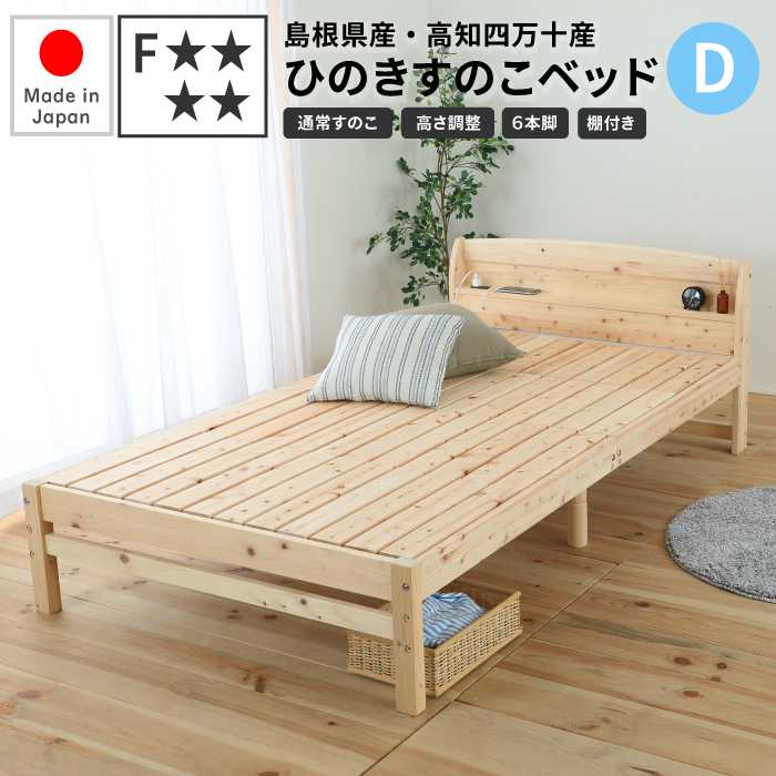 繊細すのこ・ダブルすのこベッド ダブル 国産ひのき 檜ベッド 檜ベッドフレーム 日本製 セミダブルベッド 布団 使える ダブルベッド フレーム 棚付き コンセント付き スノコベッド 国産 棚付きベッド コンセント付きベッド