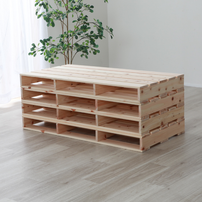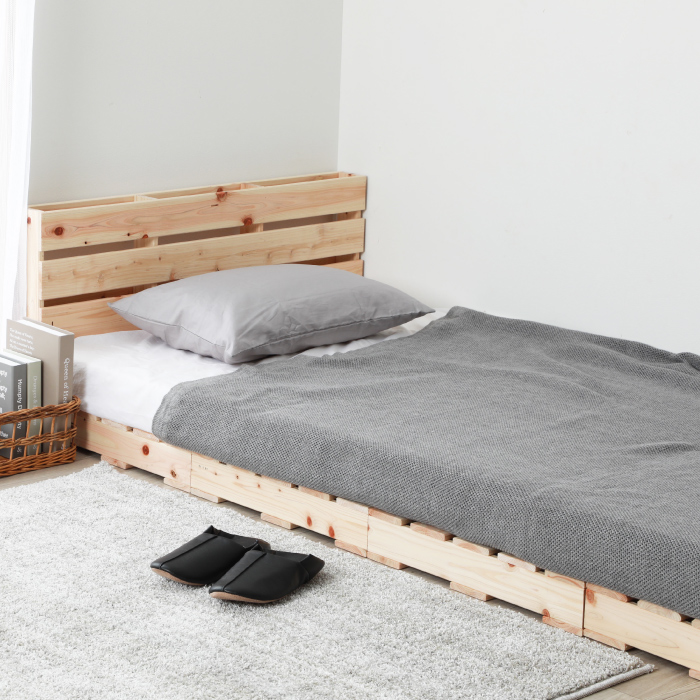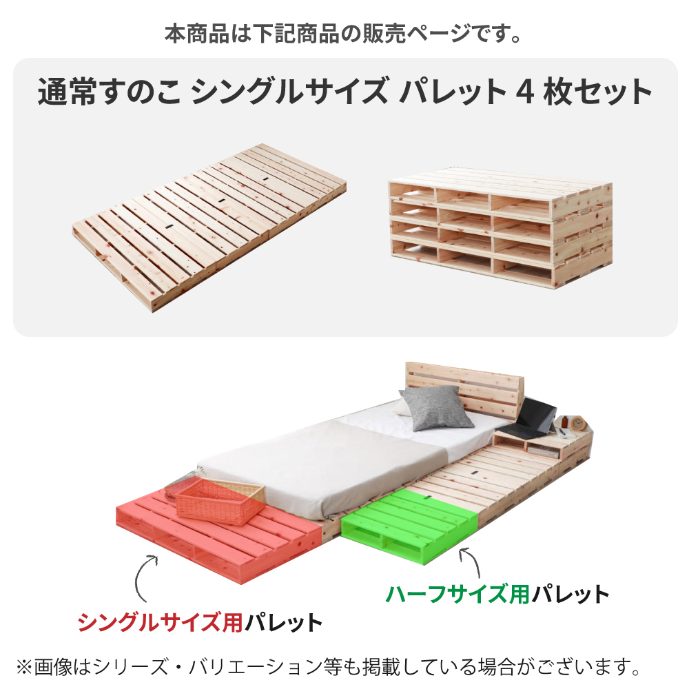 画像はシリーズ・バリエーション等も掲載している場合がございます。本商品は 檜パレットベッド 通常すのこ シングルサイズ パレット4枚セット の販売ページです。