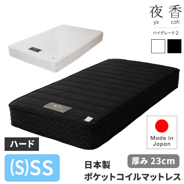 日本製 ポケットコイルマットレス 夜香ハイグレード2 サイズ (S)SS 【ショート・セミシングル】 x ハード(硬め)
