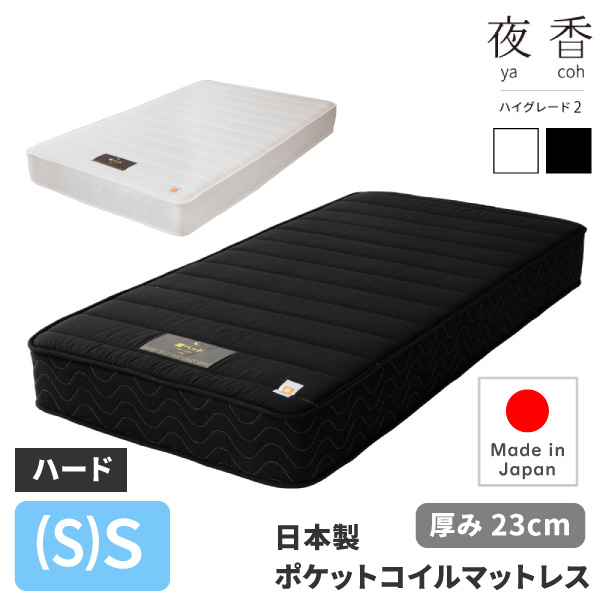 日本製 ポケットコイルマットレス 夜香ハイグレード2 サイズ (S)S 【ショート ・シングル】 x ハード(硬め)